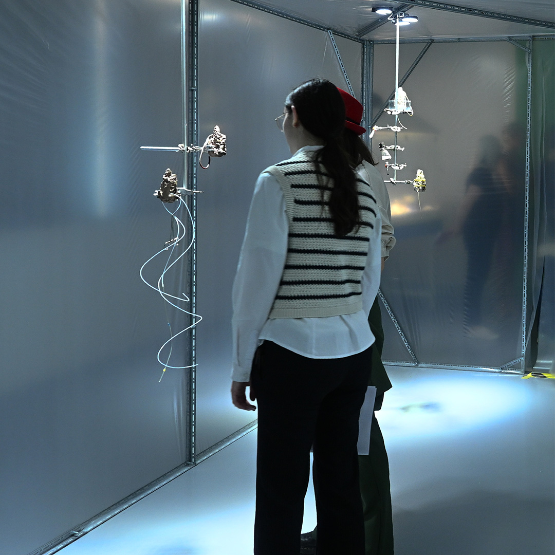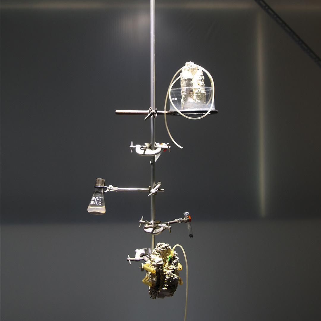 Une mission spéculative débute : un vaisseau artistique transportant une vie microscopique, des astronautes microbiens, se prépare au lancement. Leur mission : atteindre l’inconnu et initier une « poignée de main moléculaire » avec leurs frères extraterrestres. Inspiré par la science-fiction et ancré dans l’astrobiologie, BioQuantum Record imagine comment la vie pourrait accueillir son reflet – un autre extraterrestre – à travers les subtiles asymétries propres à tout être vivant. Et si, au lieu d’envoyer un message dans l’espace, nous envoyions la vie elle-même ? L’installation réunit micro-organismes, prototypes sculpturaux et traces matérielles, ouvrant un espace poreux entre l’art et la science, le soi et l’autre, la Terre.